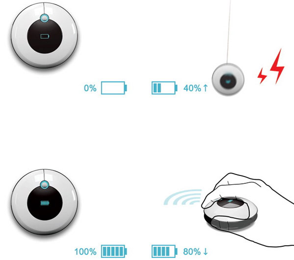 YoYo Mouse, созданная дизайнером по имени Shih-Chan Chiu – это беспроводная мышь, которая связана с компьютером посредством беспроводных интерфейсов, а не проводов. Это, с одной стороны, делает ее независимой и мобильной, а с другой – выявляет необходимость время от времени заряжать ее аккумулятор или менять в ней батарейки. Но в YoYo Mouse проблема питания девайса энергией решена совершенно по-другому.