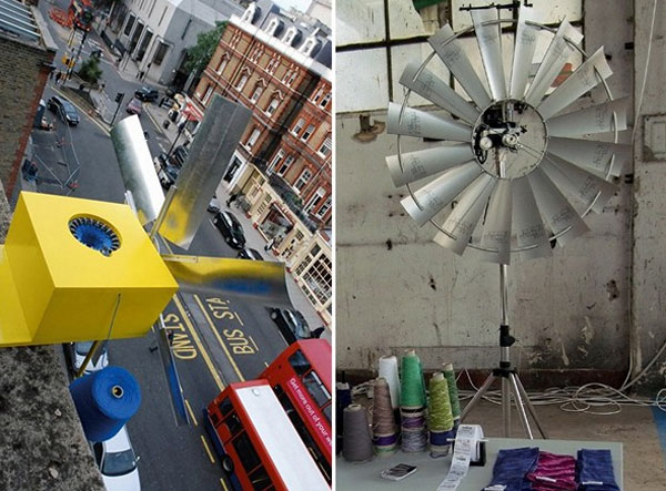 Ветряная мельница диаметром 1,2 метра, а именно так выглядит инновационная вязальная установка, расположена на балконе городской квартиры дизайнера, где удобнее всего "ловить" пролетающие мимо ветра. Ветер дует, лопасти крутятся, пряжа превращается в длинную вязаную трубу. Иногда однотонную, временами состоящую из нескольких цветов, но всегда стандартной длины в 2 метра. Через каждые 2 метра установка обрезает готовое изделие, и его можно снабдить дополнительным декором, а потом носить, продавать, или же демонстрировать на выставке.