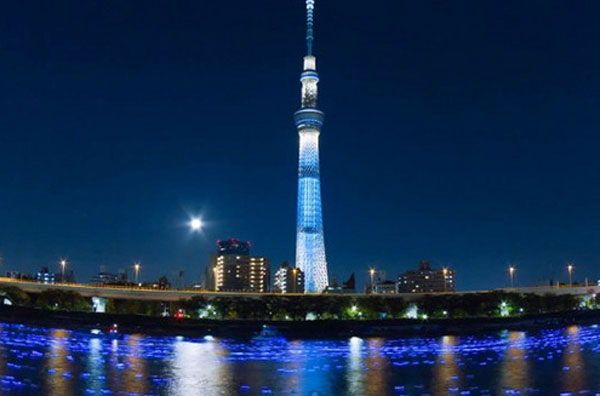 В ходе фестиваля синие светодиоды также осветили токийскую телетрансляционную башню, строительство которой было завершено в 2011 году. В настоящее время она является вторым по высоте строением в мире после башни Бурдж-Халифа. Синий свет светодиодов, установленных на здании, отражался от реки. В мероприятии, которое состоялось всего через день после появления удивительной "суперлуны" в субботу, приняли участие множество фотографов. Мастера своего дела расположились вдоль берегов Сумида и старались сделать снимки с максимально большой выдержкой, чтобы запечатлеть потрясающие пейзажи. Но, пожалуй, лучший вид на происходящее открывался с воздуха.